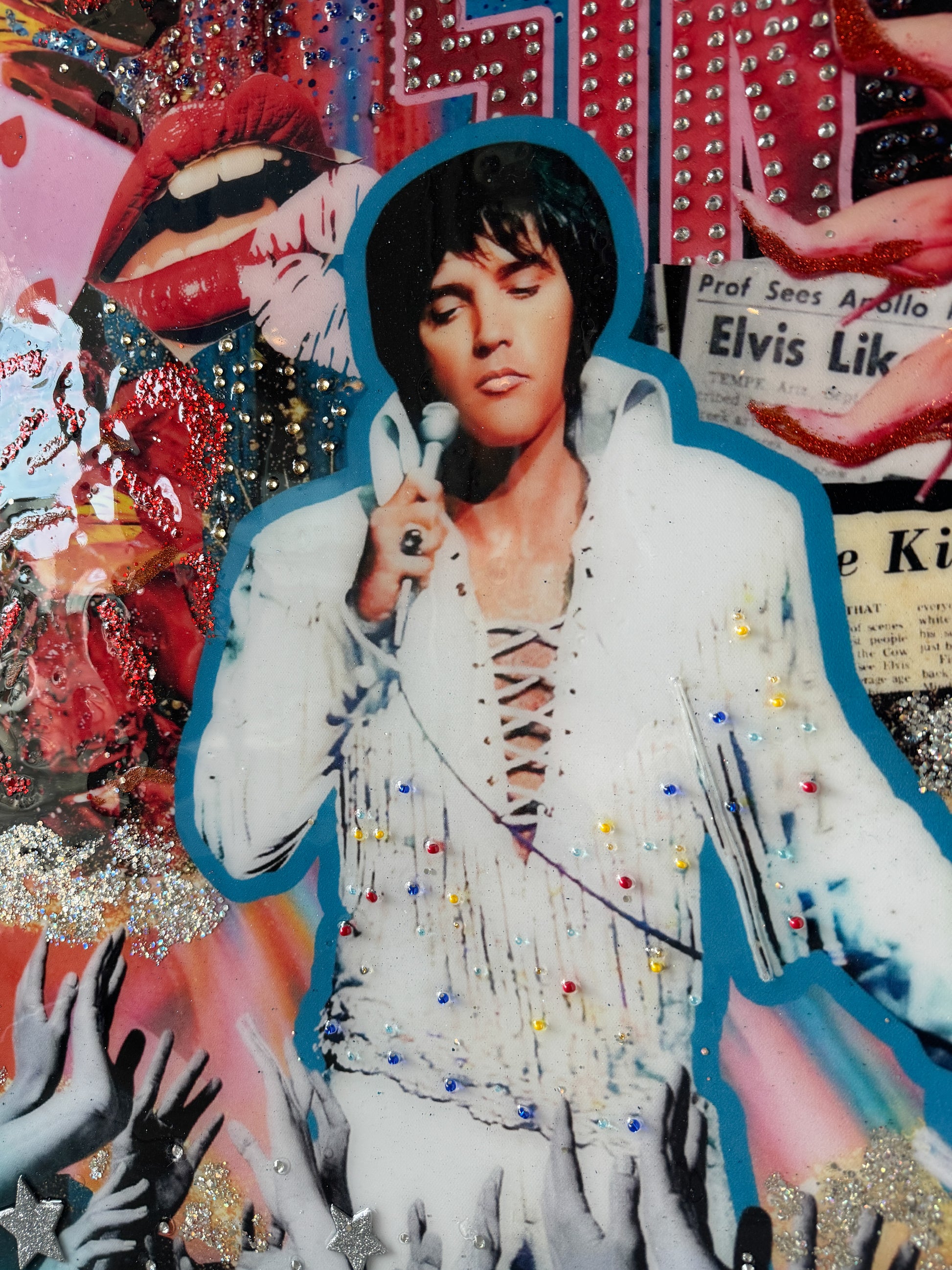 Under the heat of the Vegas lights, the distance between icon and audience disappears. Hands rise- not to take, but to connect- reaching for something that feels both tangible and untouchable. This piece captures the charged space where devotion meets presence, where the performer leans in and the crowd holds its breath.